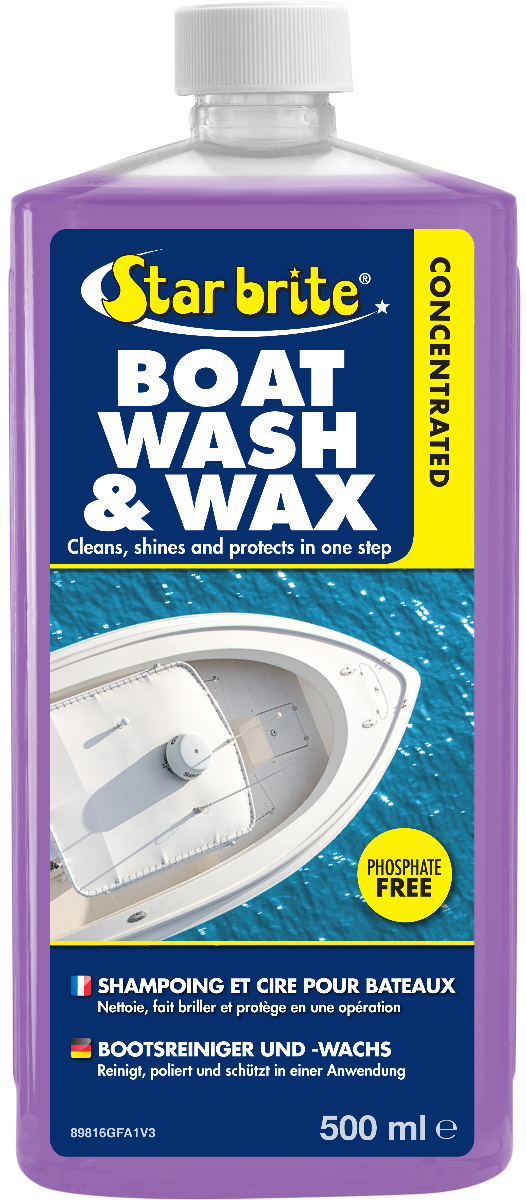 Dilute 3 capfuls of Boat Wash and Wax in a bucket of water. Mix well and apply with a sponge, soft cloth or wash brush. Rinse thoroughly with clean water and use a towel, PVA Wipe or chamois to dry. Use Boat Wash and Wax every time you wash your boat to get continuous maximum protection against salt and weathering. For stubborn stains, use Star brite Non-Skid Deck Cleaner with PTEF.