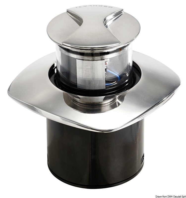 Technopolymer + mirror-polished AISI316 stainless steel body. Slightly rotate the upper stainless steel plate to raise the light to its use position. Conforming to Colreg’72, ABYC and CE standards.