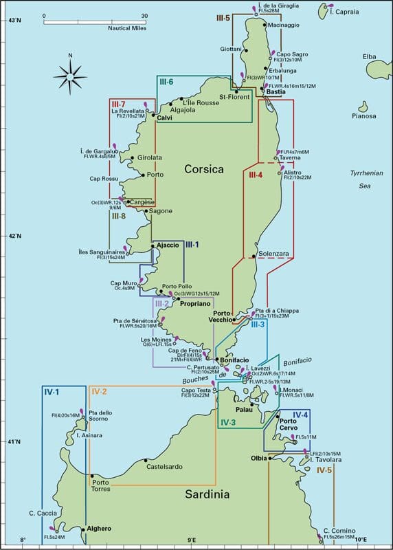 From Corsica’s exposed and dramatic west to the more gentle eastern coast, and on to the protected and scenic anchorages of the Bouches de Bonifacio and Sardinia’s north coast.