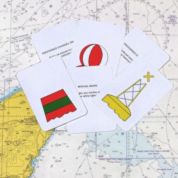 All mariners need a comprehensive knowledge of the buoyage rules and should be able instantly to identify a mark at first sight. These Flip Cards show 31 different buoys and navigational marks in colour, with the meaning and position, together with the light characteristics on the back of the card. Both the Cardinal and IALA marks are featured, as well as the more recent preferred channel buoys. This set shows the ‘A’ Region buoys which are found in most areas of the world.