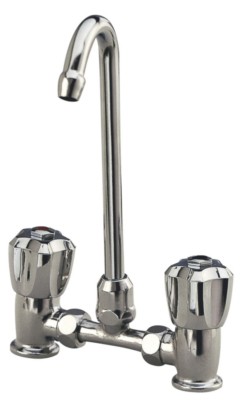 Brass plated tap, folds down completely in sink to optimise space in the galley.