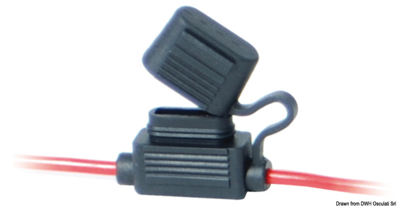 High quality thermal-rubber, for standard blade fuses. Fitted with 2 x 130-mm cables, section 4-mm2 section. 20-Amp max capacity.
