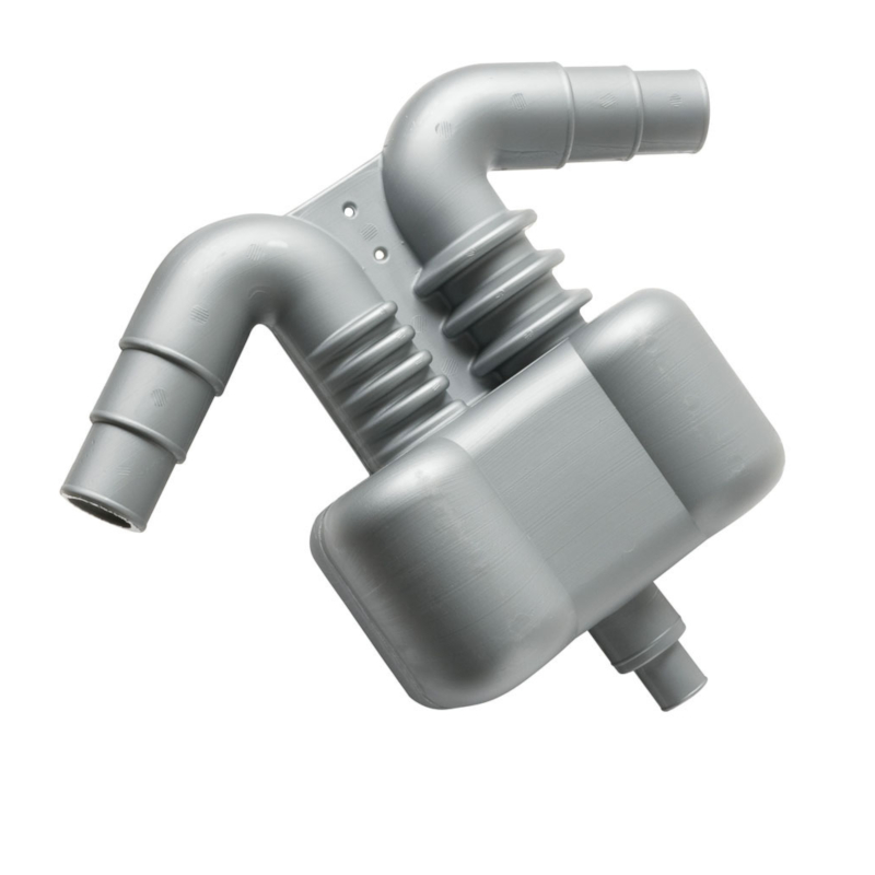 Gas/water separator for generators. Works as silencer and separator. Gas inlet and outlet connections Ø 40/45/50. Water outlet Ø 38 mm – Ø 25 mm.