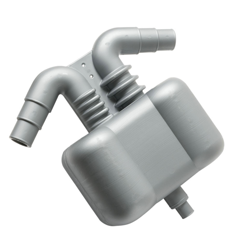 Gas/water separator for generators. Works as silencer and separator. Gas inlet and outlet connections Ø 40/45/50. Water outlet Ø 38 mm – Ø 25 mm.