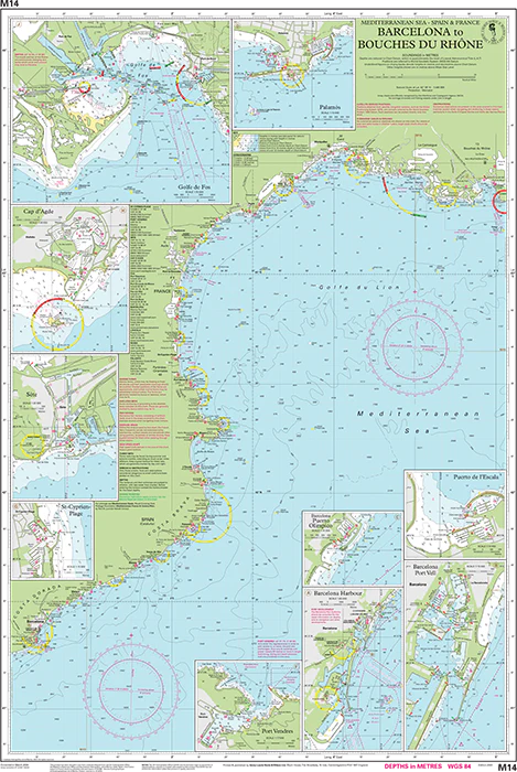 Imray Chart M14 Barcelona to Bouches du Rhône – Navigate the Western Mediterranean with Confidence
