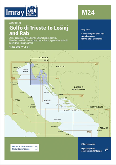 Navigate the stunning Adriatic coastline with the Imray Chart M24 Golfo di Trieste to Lošinj and Rab. Order nowto ensure your sailing journey is guided by the most accurate and detailed chart available for this beautiful region.