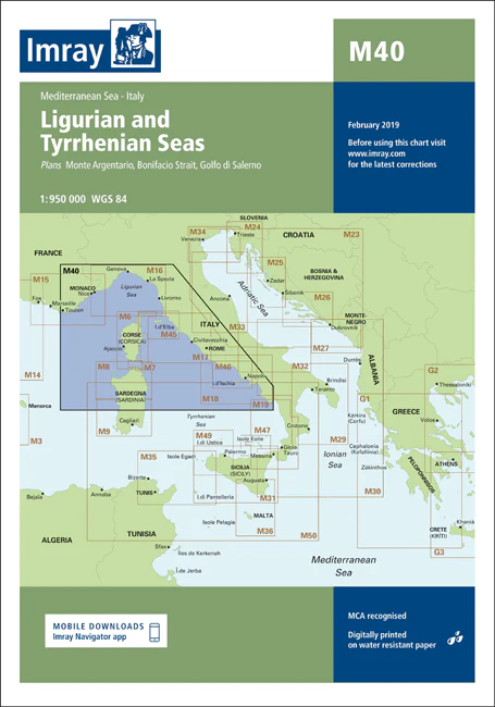 Imray Chart M40 Ligurian and Tyrrhenian Seas – Navigate Italy’s Stunning Coastal Waters with Precision
