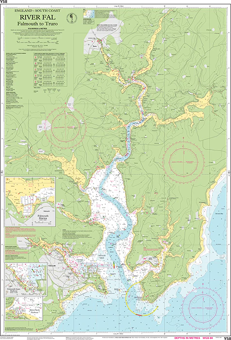 Covers the River Fal from Falmouth to Truro; including Falmouth Yacht Marina, Falmouth Inner Harbour, and Mylor Yacht Harbour.