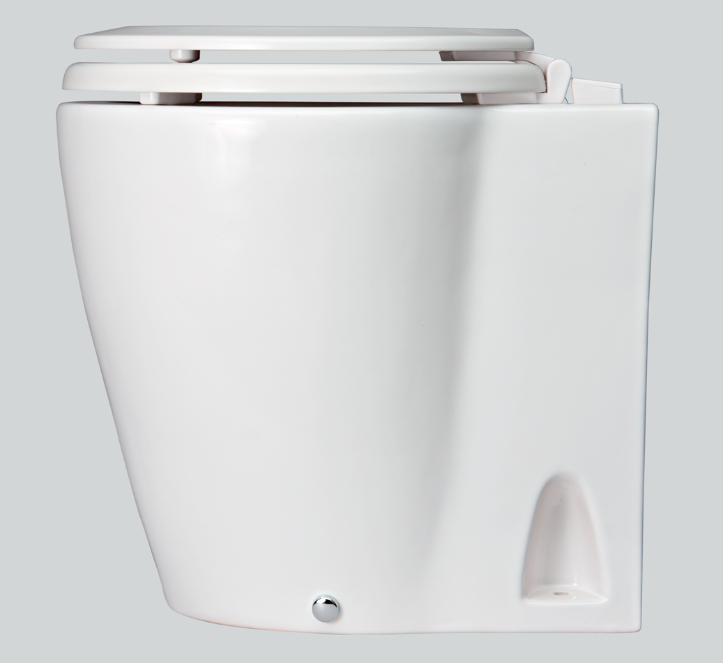 The well-proven and popular electric standard toilets with combined pump units for flushing and wasting. All metal parts and screws are in stainless steel. The base is in impact-resistant material It can be installed either above or below sea level. A special macerator pump allows the expulsion up to 3.50 m in height. Self-priming up to 1,5 mt. vertically. Equipped with seat lid and control panel. Port connections: inlet. 19mm. 3/4” and outlet 25/38mm. 1 1/2”