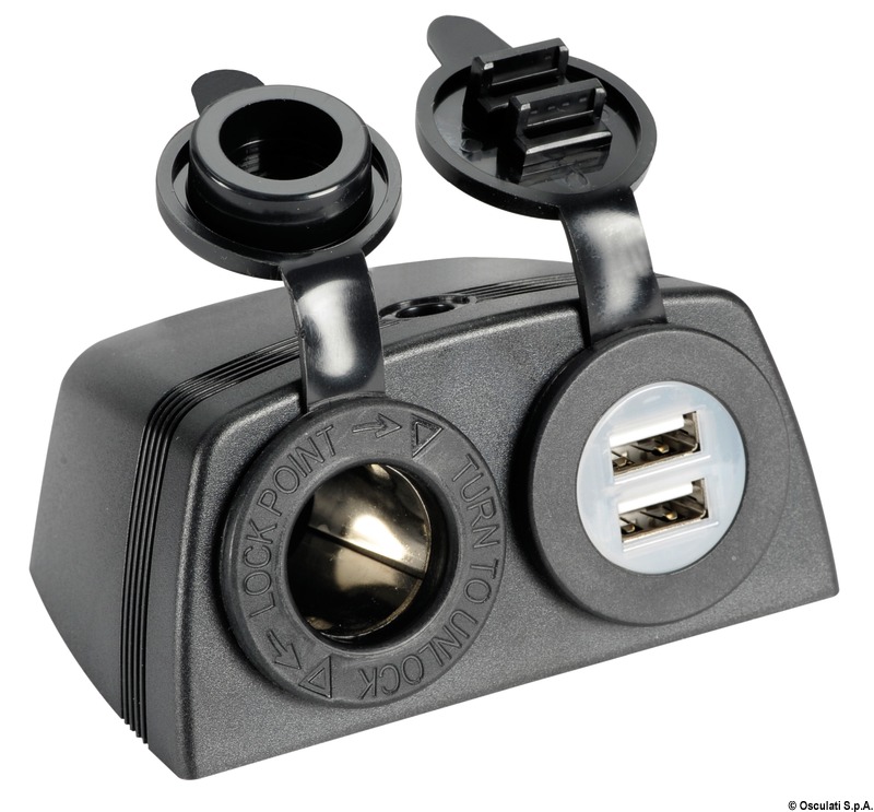Lighter plug + double USB + body for flat mounting