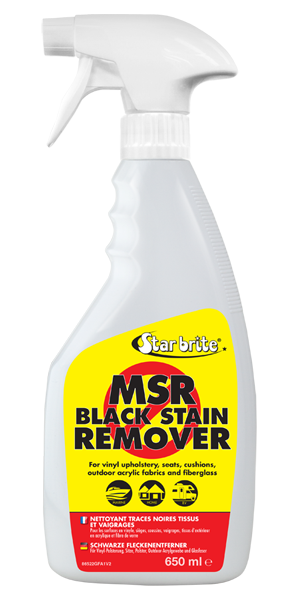 MSR Black Stain Remover quickly removes unsightly stains from fiberglass, vinyl, plastic or painted surfaces. It begins working on contact. The special buffered formula will not harm vinyl upholstery or threads. It is a much safer alternative to using bleach, and can also be used around the home or in RVs wherever stains are a problem.