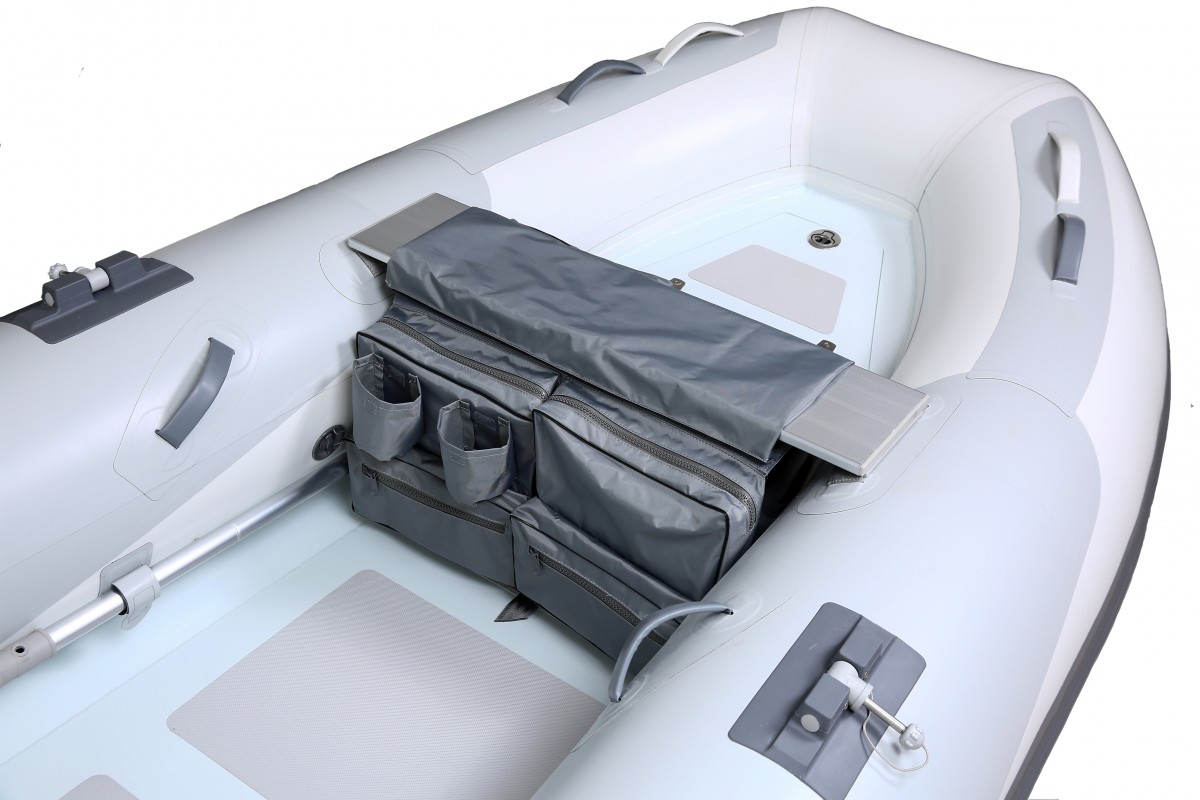Grey PVC saddlebag for RIB, tenders and small crafts with a bench.Mounts on the bench with an auto-grip fastener. Easy to fix and remove to take it along when boarding or docking. Features a 25 mm thick foam for extra cushioned comfort.