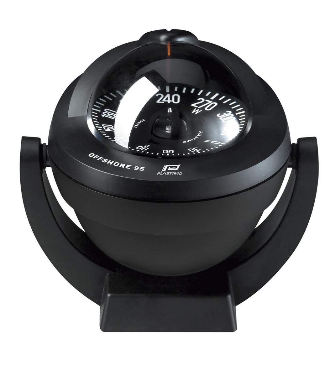 Installation• Flushmount on the horizontal dashboard: compact design, interchangeable with Offshore 90 and most compasses of equivalent size.• Bracket: broad and sturdy bracket base absorbs vibrations. Mounting can be done whatever the angle, provided that the compass and card unit remain horizontal at all times. Bracket-mount compass can also be removed when fitted with a clip plate.