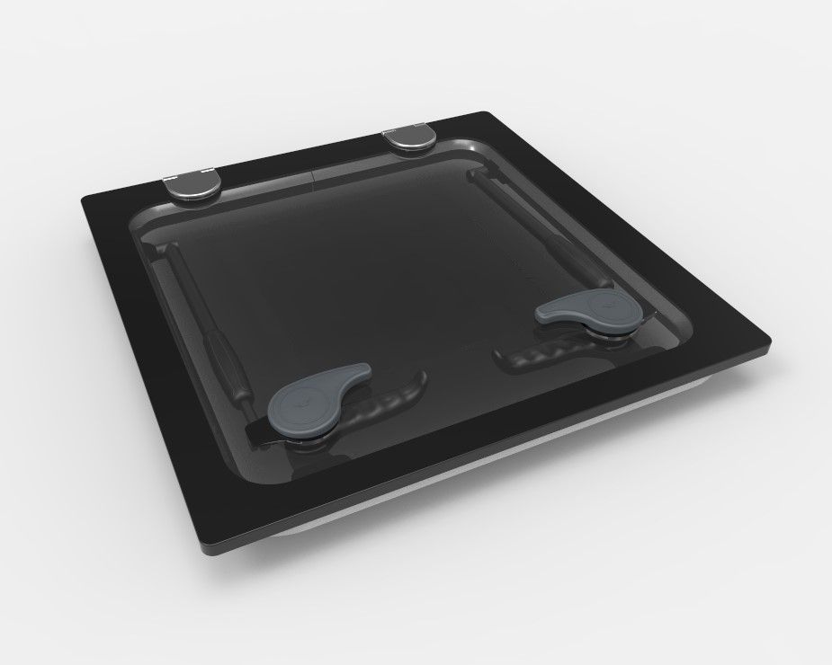 Forerunner of the Flush hatch on Mari-Cha IV, Goiot introduces its range of Flush hatches, designed for production boats.The Flush model shows its relationship to the Opal range by combining a thick aluminium profile frame, telescopic stays and ergonomic handles.Innovation is at the service of aesthetics: the use of a thick and rigid acrylic (15 mm), mounted on specific stainless steel hinges, makes it possible to avoid any opening frames and creates a new harmony on the deck.
