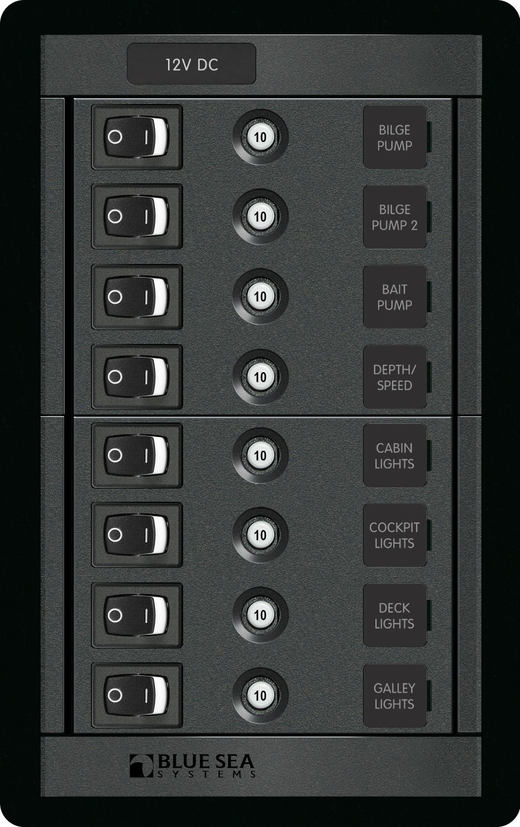 Panels with meters include a toggle switch to monitor voltage on up to three battery banks