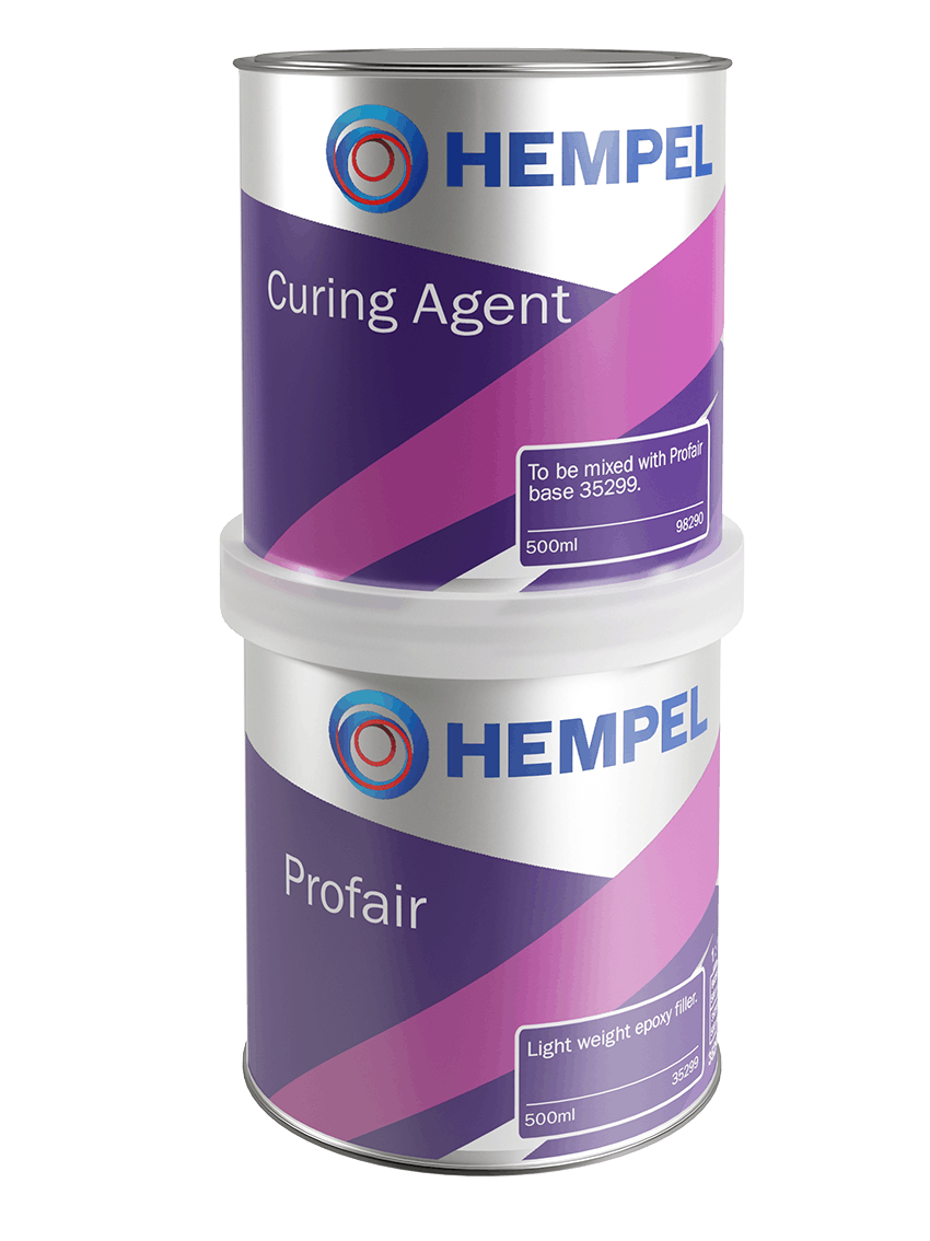 Hempel’s Profair 35290 is a lightweight two-component, epoxy filler with good adhesion and water resistance. Easy to sand when fully cured.