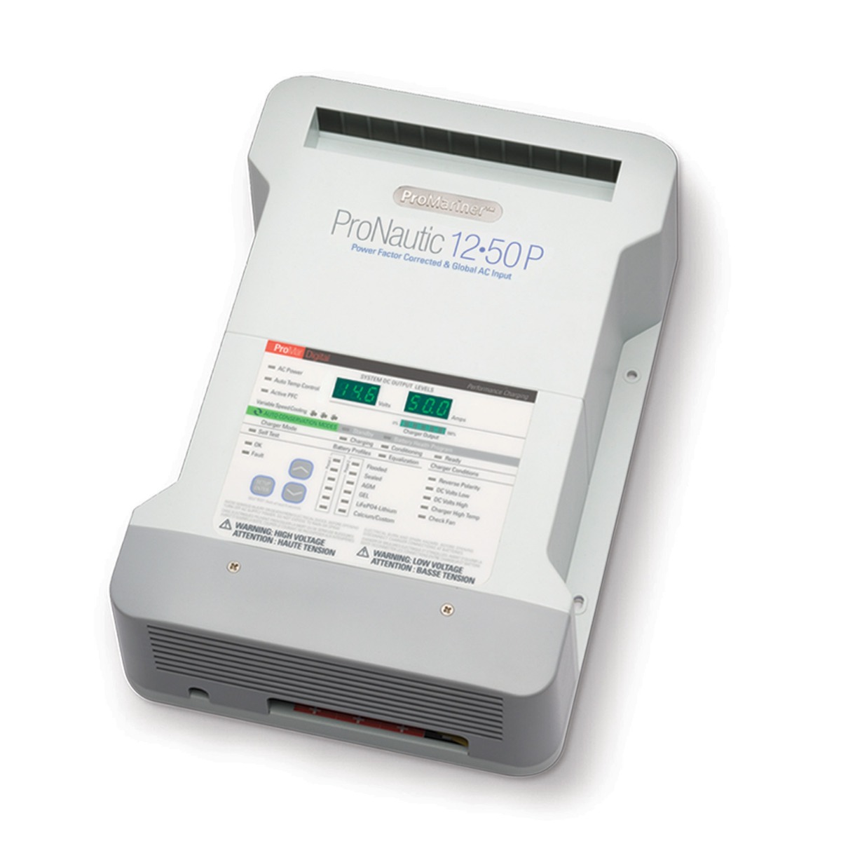 Industry recognized with the 2010 IBEX Innovation Award, ProNauticP employs our Generation 3 ProMar Digital Performance Charging Platform which combines all digital control and softwarebased power conversion technology with global energy management features. ProNauticP addresses the trend of incorporating and using more 12-volt electronics onboard today’s power, sail, cruising and sport fishing boats. Boasting twelve digitally-controlled performance charging profiles with finger tip selection, ProNauticP fully charges, conditions, maintains and re-conditions batteries while extending battery life and maximizing battery reserve power performance. Designed to provide more time on the water enjoying what you like most…boating.