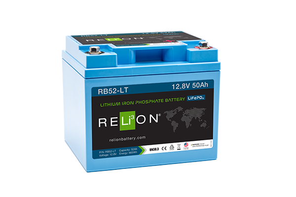 #html-body [data-pb-style=CDV1XVU]{justify-content:flex-start;display:flex;flex-direction:column;background-position:left top;background-size:cover;background-repeat:no-repeat;background-attachment:scroll}The RB52-LT is a 12V 52Ah lithium battery and is part of RELiON’s Low-Temperature Series. This compact and powerful lithium iron phosphate battery is specially designed for cold-weather performance. RELiON’s LT Series batteries can safely charge at temperatures down to -20°C (-4°F) using a standard charger. The system features proprietary technology which draws power from the charger itself, uniformly heating the cells within the battery to 41°F (5°C), so that it can be charged at its full recommended current. LT batteries require no additional components such as heating blankets.