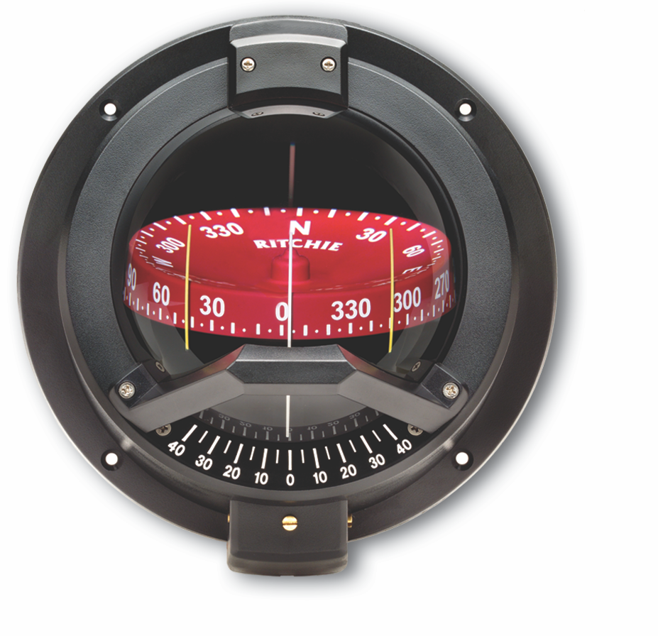 4 1/2″ Ritchie CombiDial and Built-in Clinometer Easily Installed, Fits 5.75″ (14.61 cm) Mounting Hole. Click here to view a template of the mounting hole (NOTE: Be sure you print the template Actual size). Internal Gimbal Systems for Maximum Stability During Adverse Pitch and Roll Conditions Scientifically Matched Sapphire Jewel and Hardened Steel Pivot Dial Movement Fiberglass Reinforced Bowl 45 degree Lubber Lines Exclusive Built-in 12 Volt Amber LED Lighting Built-in Compensators to Easily Adjust for Deviation 100% Repairable Exclusive 5-Year Ritchie Warranty