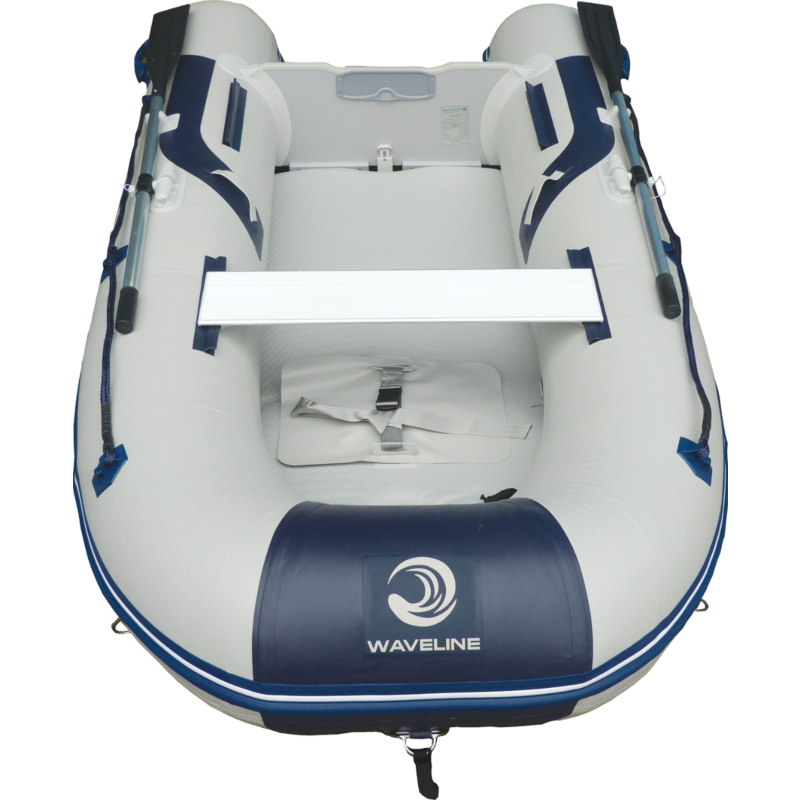 • 900g 1100 denier polyester• 4-year limited warranty on seams and cloth• Splashwell flaps• Aluminium sliding seat• Cleat style handles• Transom drain• 3 chamber construction• Wide rubbing strake• Low profile valves• Stainless steel towing eyes• Bravo rowlocks• Lengthened rope for extra safety• V keel• Fuel can straps• Sliding seat position