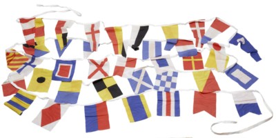 40 pennants, 100% polyester.The total length of the string: is 12 m.Size of flags: 14 x 20 cm.