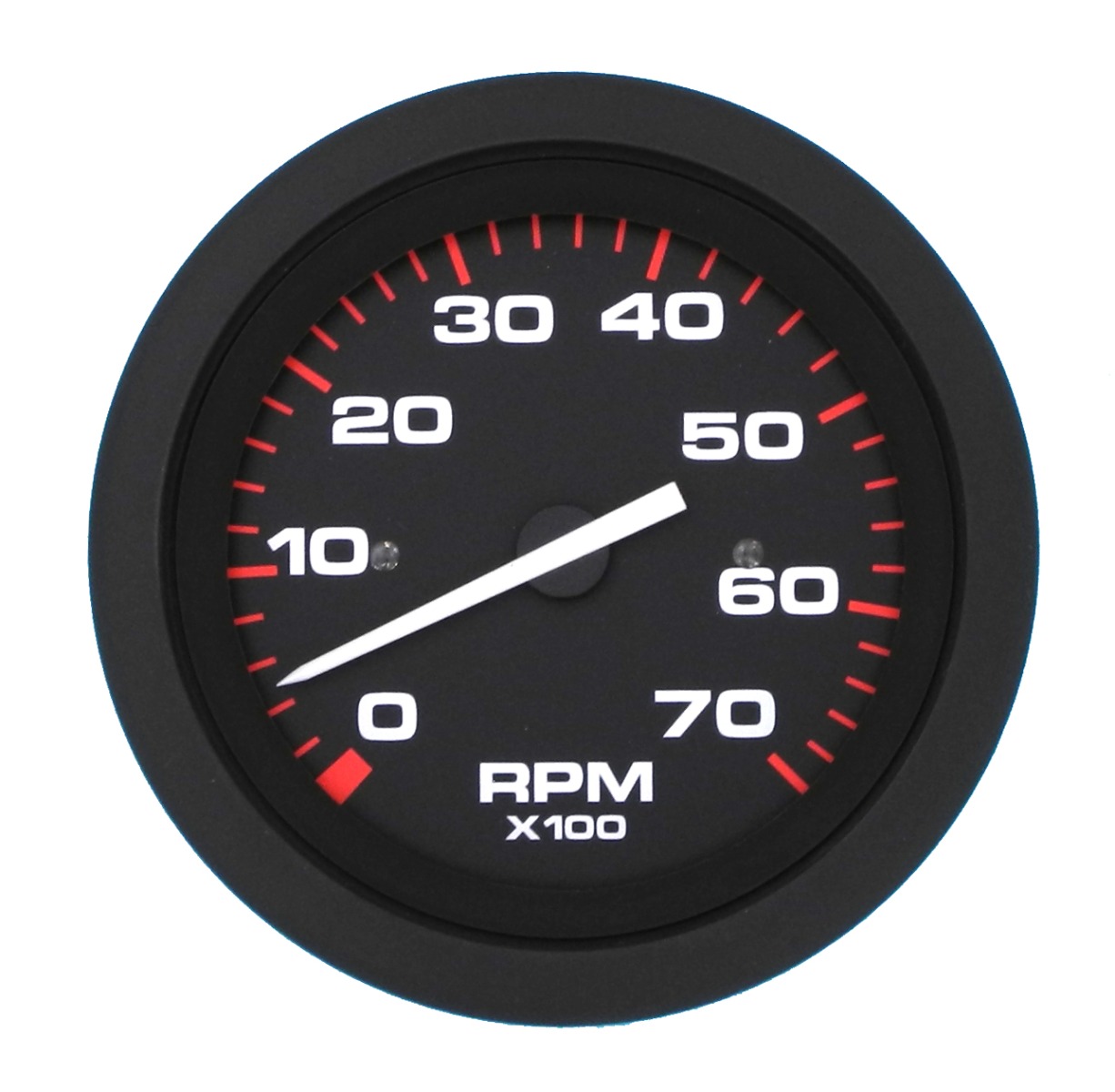 • Scratch-resistant curved glass lenses• US and metric scales with ISO symbols• Optional add-on eyebrow bezels• Black, near-flush bezels• Black dial, red graduations, white numeralsm vivid white pointer staff• Available for most outboards, stern drives and diesel engines• All Veethree gauges include 4 year manufacturers guarantee