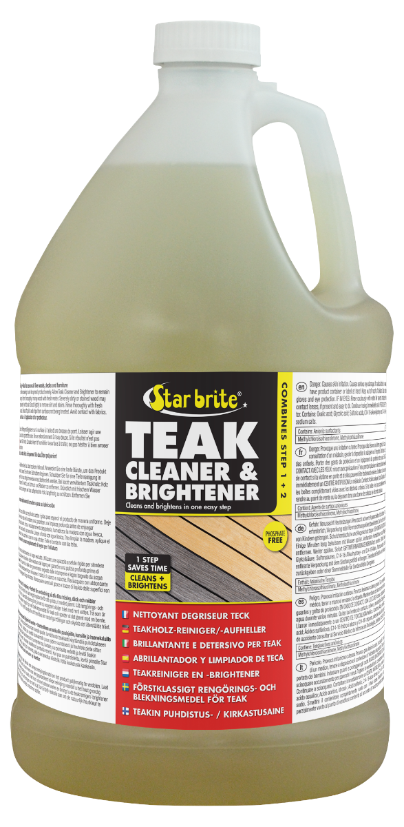 Star brite® Teak Cleaner and Brightener is specially formulated to transform old gray and black stained teak in one step.