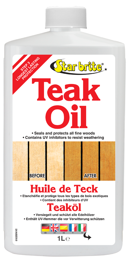 Directions If wood is dirty or weathered, first treat with Star brite Premium Teak Cleaner and Star brite Premium Teak Brightener. Apply to dry surface using a brush or cloth in the direction of the wood grain. Allow to soak into wood, then wipe off excess. Apply second coat if necessary. Re-apply Star brite Teak Oil at first sign of weathering.